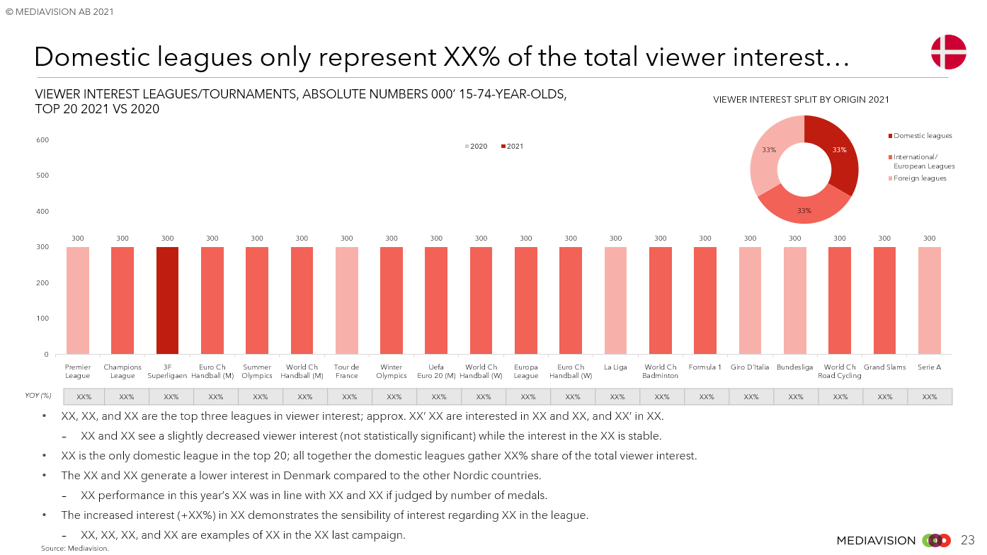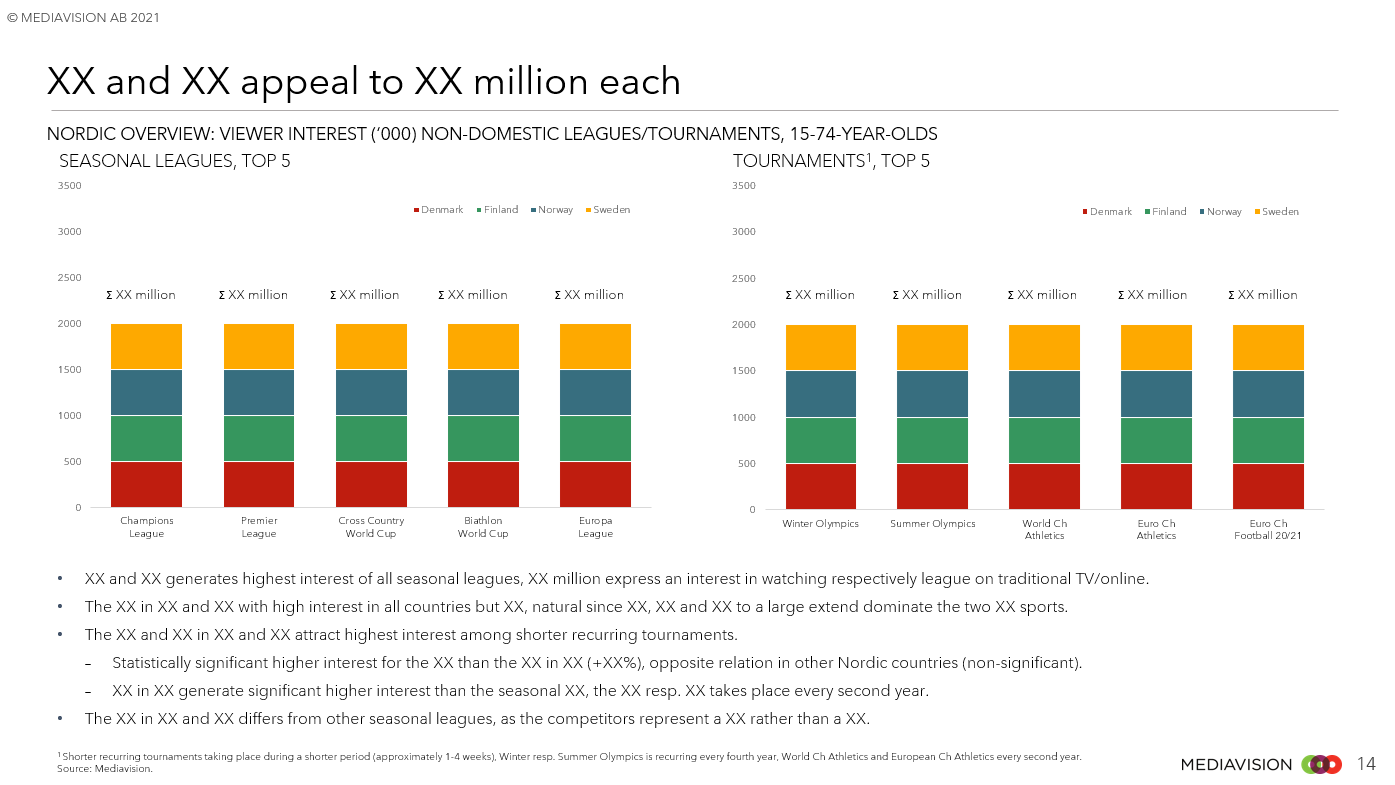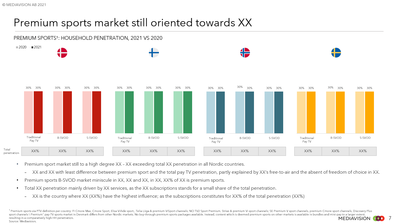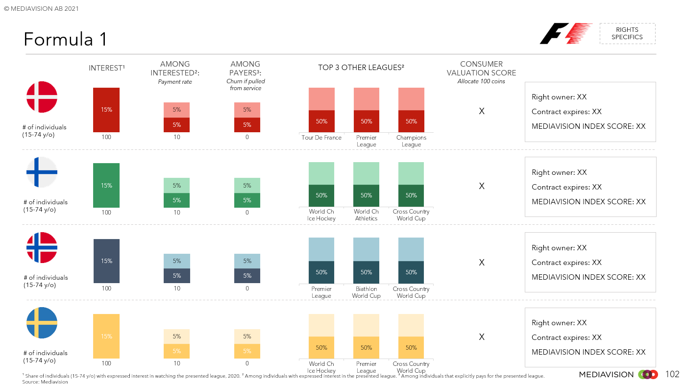Mediavision Sports Analysis är en djupgående analys av konsumentens intresse, betalningsvilja och betalgrad. Analysen omfattar över 90 sporträttigheter i Norden och ger en bred överblick av hur konsumenten värderar sporträttigheter. Den innehåller också jämförelser av de olika rättigheterna i Norden.