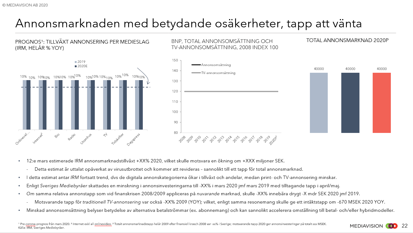 Genom att utgå från konsumenterna (och vad de gör eller betalar för) kommer vi en bra bit. Men inte hela vägen. Det är minst lika viktigt att analysera de olika bolagen och marknaden som helhet. Hur utvecklas annonsmarknaden? Eller konkurrensen mellan globala och lokala aktörer? Hur paketerar och prissätter aktörerna distribution med innehåll?